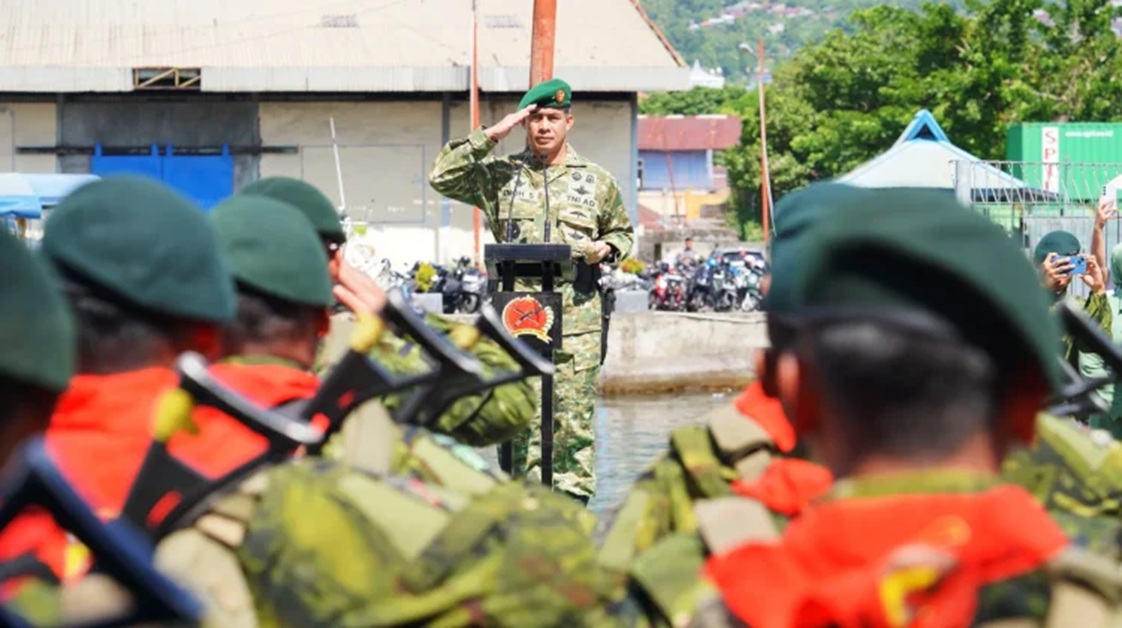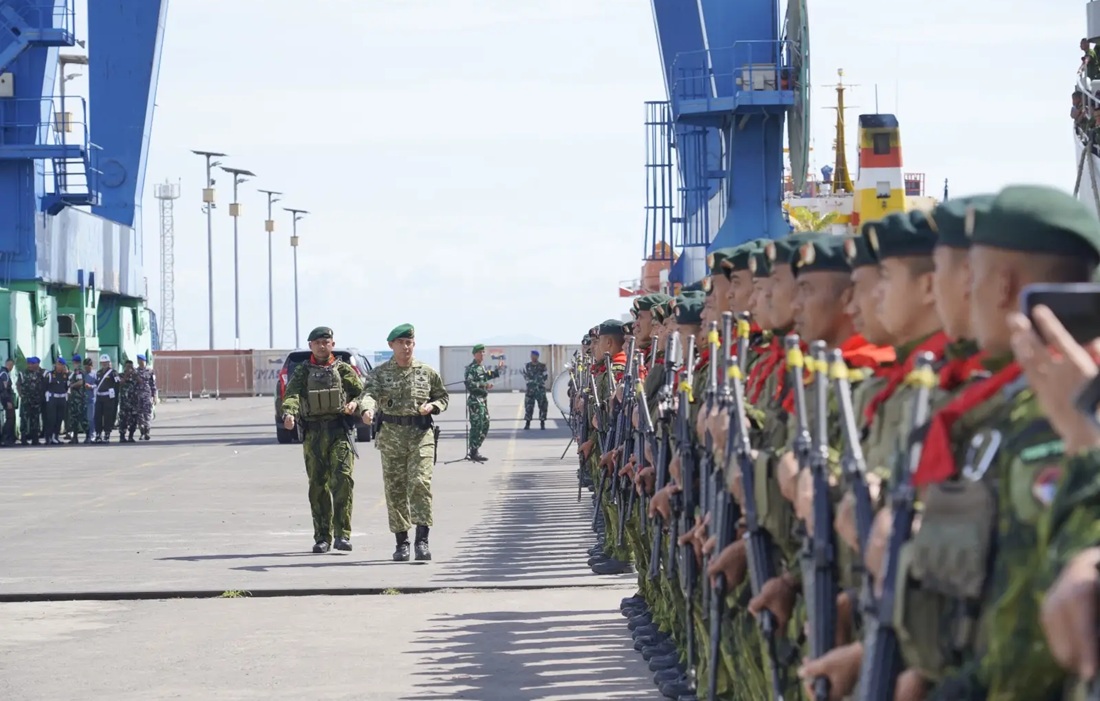 Ternate – Komandan Korem 152/Baabullah, Brigjen TNI Enoh Solehudin memimpin langsung upacara penerimaan Satuan Tugas (Satgas) Mobile RI–PNG Yonif 732/Banau yang telah selesai melaksanakan tugas pengamanan di wilayah perbatasan Republik Indonesia–Papua Nugini. Kegiatan tersebut dilaksanakan di Dermaga Pelabuhan Ahmad Yani, dengan penuh khidmat dan suasana haru, Sabtu, 21 Maret 2026.